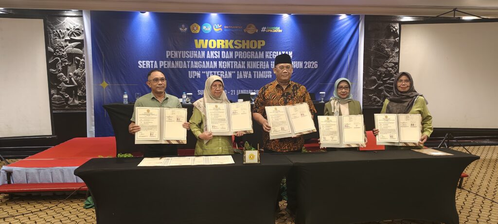 Surabaya – Program Studi Agribisnis Universitas Pembangunan Nasional Veteran Jawa Timur terlibat aktif dalam kegiatan Penyusunan Aksi dan Program Kegiatan serta Penandatanganan Kontrak Kinerja Unit Tahun 2026. Kegiatan tersebut dilaksanakan pada tanggal 20–21 Januari 2026 di Hotel Bumi Surabaya. Pelaksanaan kegiatan menjadi bagian penting dari upaya penguatan tata kelola kinerja institusi di lingkungan universitas. Kegiatan ini diikuti oleh seluruh unit kerja sebagai bentuk komitmen terhadap pencapaian target strategis tahun 2026. Forum ini menjadi sarana penyelarasan rencana kerja unit dengan kebijakan dan arah pengembangan universitas. Proses penyusunan aksi dan program kegiatan dilakukan secara terstruktur dan berbasis evaluasi kinerja sebelumnya. Pendekatan berbasis kinerja menjadi fokus utama dalam perumusan program kerja unit. Hasil kegiatan diharapkan mampu meningkatkan efektivitas dan akuntabilitas pelaksanaan program akademik dan nonakademik.